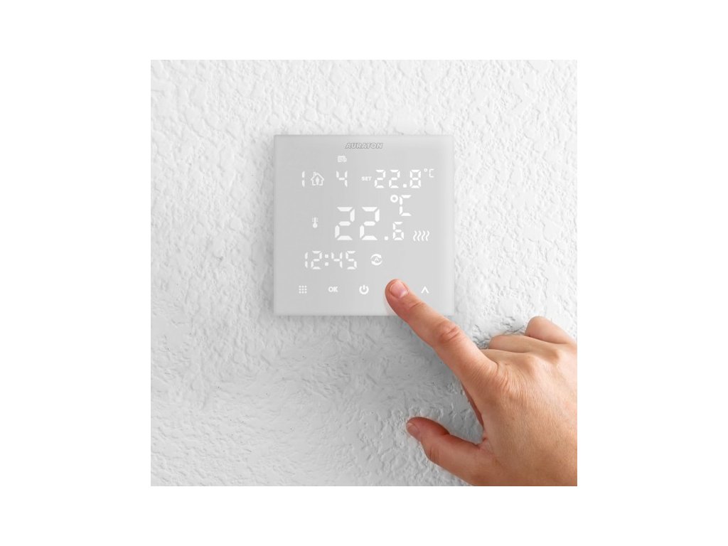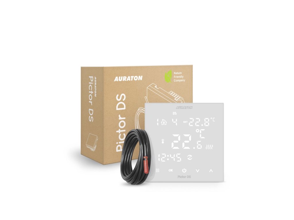 AURATON Pictor DS je zapuštěný elektronický termostat s moderním dotykovým panelem, který