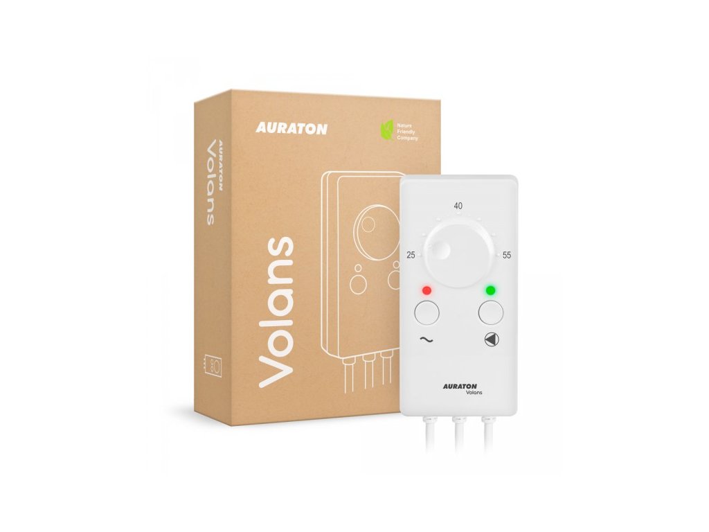 AURATON Volans je elektronický ovladač pro systémy ústředního topení, který ovládá oběhové čerpadlo. Termostat slouží k nucené cirkulaci vody v systémech ústředního topení s plynovým kotlem nebo kotlem na tuhá paliva, které nejsou vybavené řídící jednotkou pro ovládání čerpadla. Teplotní čidlo termostatu měří teplotu vody, která je vháněna do systému ústředního topení.