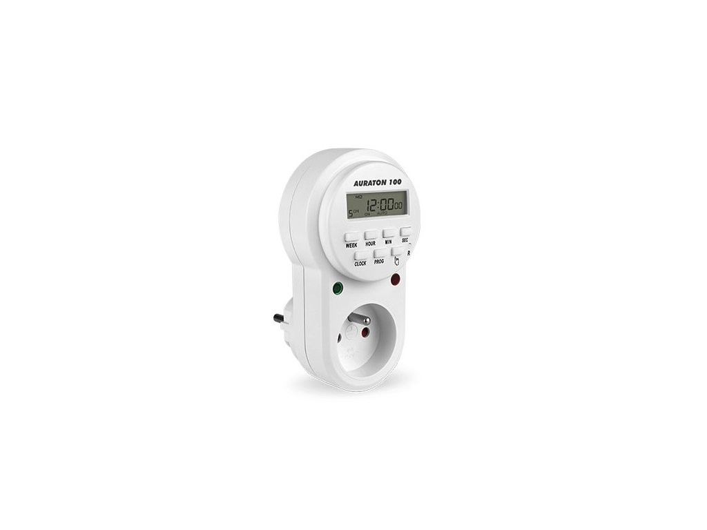 AURATON 100 je týdenní multifunkční časový spínač určený např. pro ovládání čerpadla TUV v cirkulačním systému. Může také sloužit k zapnutí jakéhokoliv zařízení s napětím 230 V AC a maximálním proudem 16 A.
