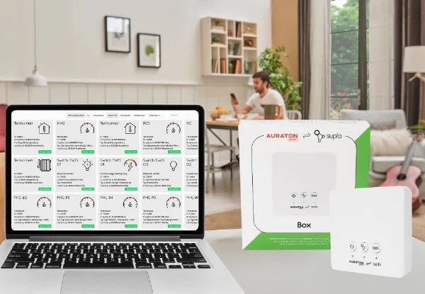 AURATON Box je nová internetová brána, která umožňuje plnou integraci všech zařízení řady AURATON Smart se systémem inteligentního řízení domácnosti SUPLA. Uživatelé díky tomu mohou svá zařízení ovládat přímo pomocí mobilní aplikace SUPLA nebo přes web cloud.supla.org, a to z domova i na dálku. AURATON Box je klíčovým prvkem při budování chytré domácnosti, který umožňuje plnou automatizaci a vzdálenou správu vytápění, vody, osvětlení a dalších funkcí domácnosti. Aplikace také spolupracuje s hlasovými asistenty, jako je Alexa a Google Assistant.