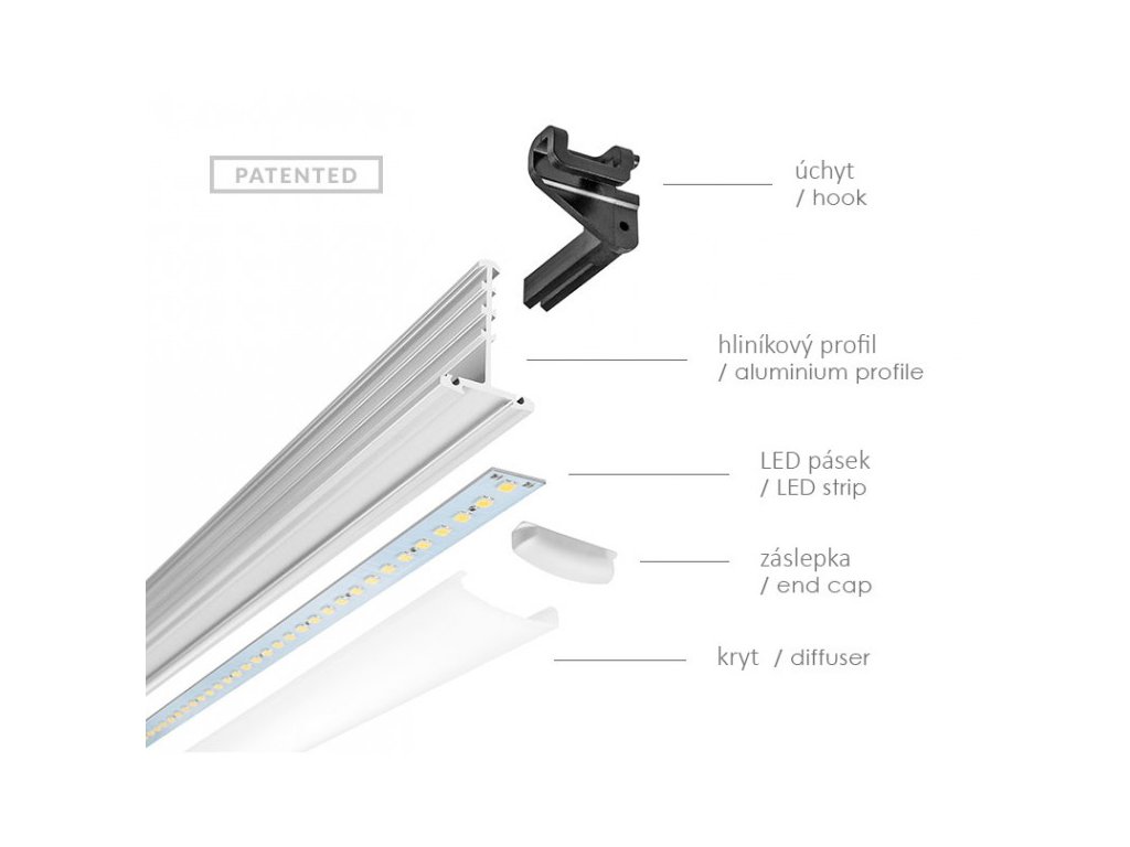 - Poskytuje až 70% úsporu energie ve srovnání s fluorescenčními rastrovými svítidly a až 35% ve srovnání s populárními rastrovými LED svítidly
